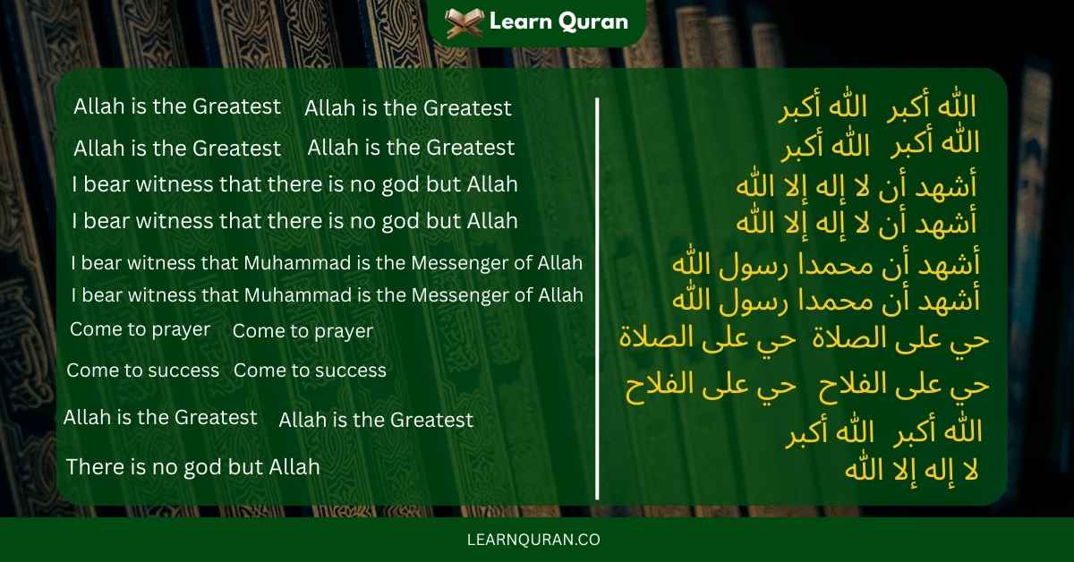(For Fajr, two extra lines are added: الصلاة خير من النوم Prayer is better than sleep)